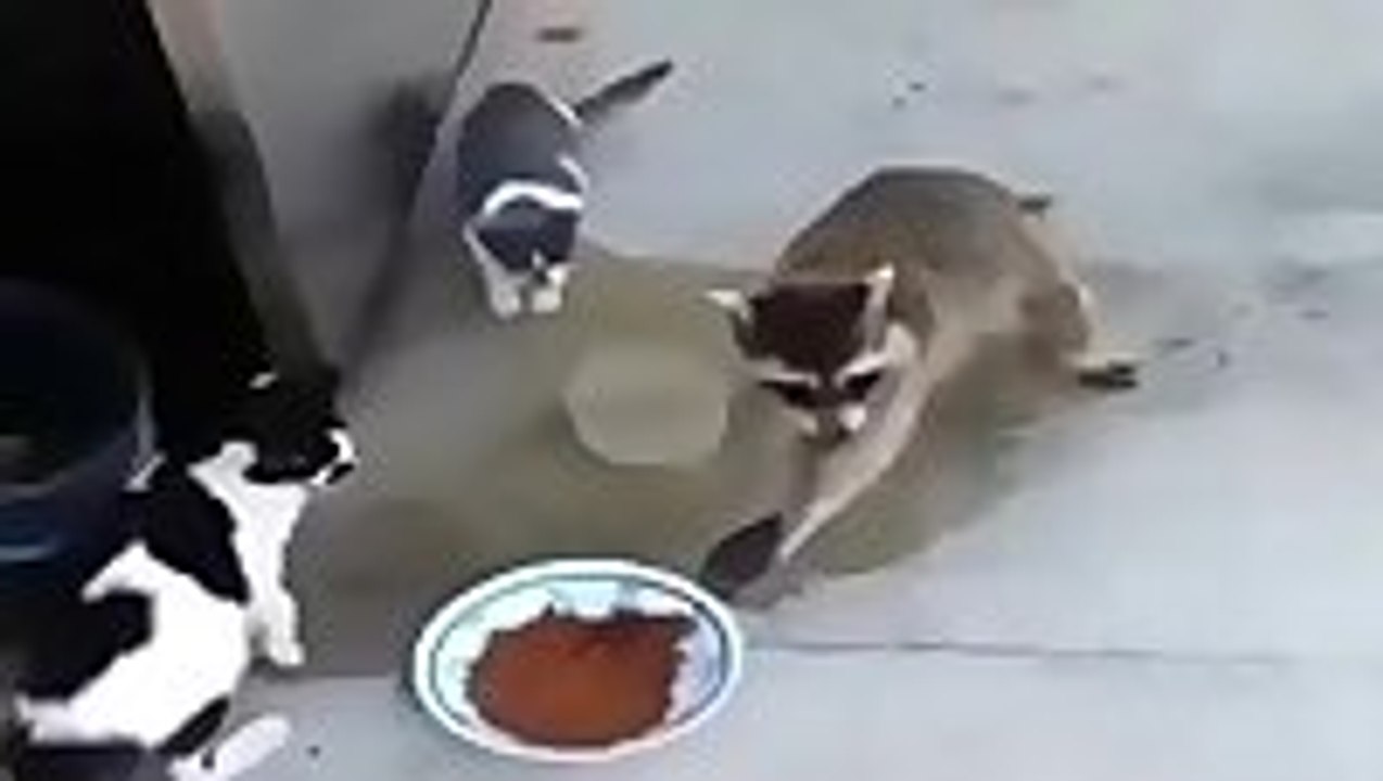 Raccoon Steals Food From 3 Cats And Makes A Great Escape Funny Dialogs Video Dailymotion