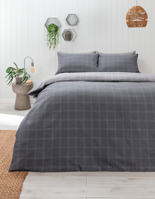 Grey Tramline Brushed Cotton Reversible Duvet Set Home George At Asda