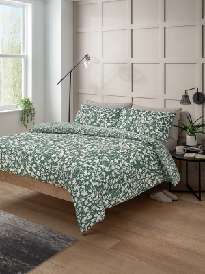 Green Shadow Floral Reversible Duvet Cover Set Home George At Asda